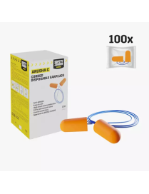 Disposable and slow-recovery foam earplugs with cord that protect against high-level noises