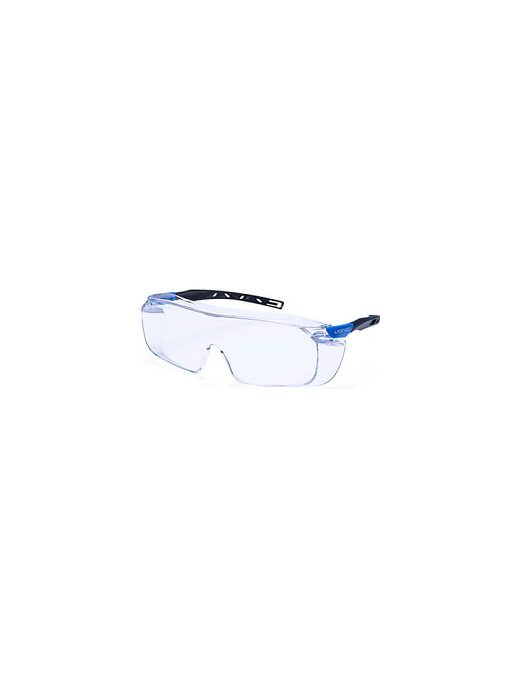 Unique, innovative and lightweight OTG style with slim dual colour blue and grey temples featuring stylish aeration slots. This modern over-spectacle is metal free and available in clear as well as smoke lens options.