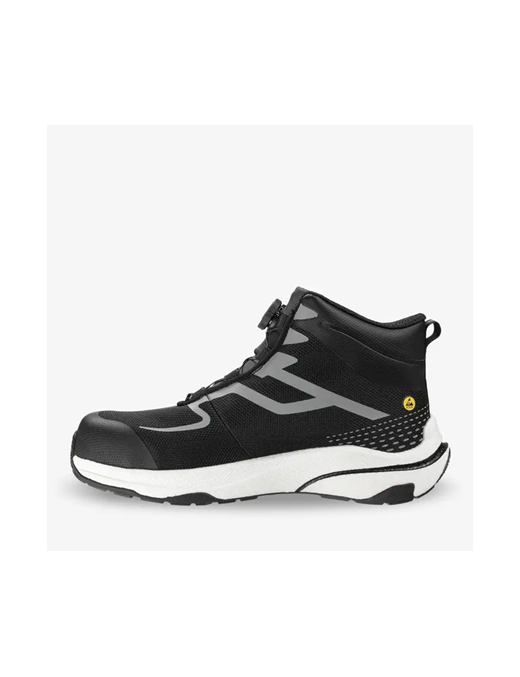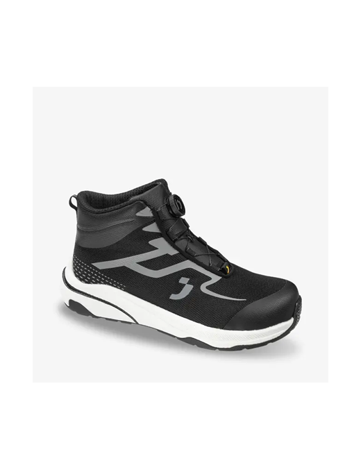 Innovative, ultra comfortable mid-cut safety shoe with an anatomically shaped toe cap for natural movement and TLS closure