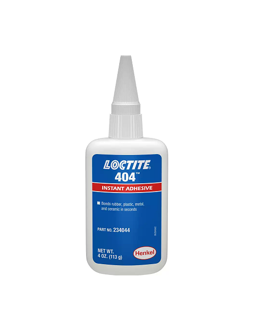 LOCTITE® 404 is a transparent, colorless to straw colored, low viscosity instant adhesive (industrial grade) designed for bonding plastics and elastomeric materials. It allows for very fast-fixturing for ease of assembly and handling: especially suited for quick repairs. It has been qualified to Commercial Item Description A-A-3097.