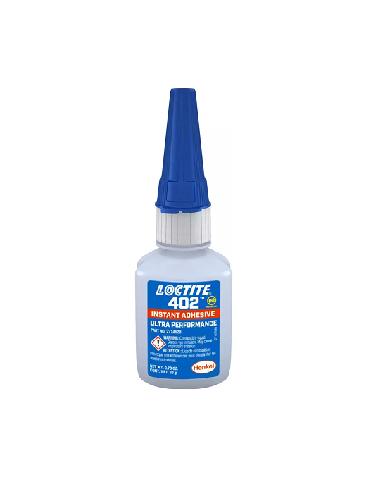 LOCTITE® 402 is a high temperature and fast-fixturing instant adhesive that reliably and strongly bonds to a wide range of plastic, rubber, and metal substrates. It is ideally suited for the joining of small parts in high-speed production applications as well as quick, on-the-go repairs. Using the primer LOCTITE® SF 770 (or LOCTITE® SF 7701 for medical device assembly), the assembly of difficult-to-bond (PP, PE, PTFE) materials is possible.