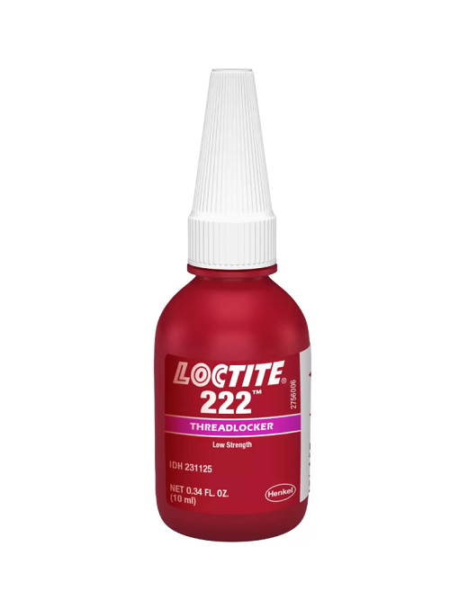 If you’re working with small diameter screws made of low strength metals (e.g., aluminum or brass), try LOCTITE® 222. It is ideal for low-strength threadlocking of adjustment screws, countersunk head screws, and set screws.