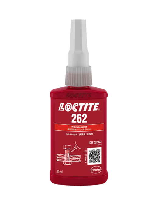LOCTITE® 262 is a red, general purpose, high strength, anaerobic-curing threadlocking adhesive, which prevents threaded fasteners from loosening due to heavy shock and vibration. Ideal for applications where migration of the adhesive must be prevented. It fluoresces under UV light – great for quality control.