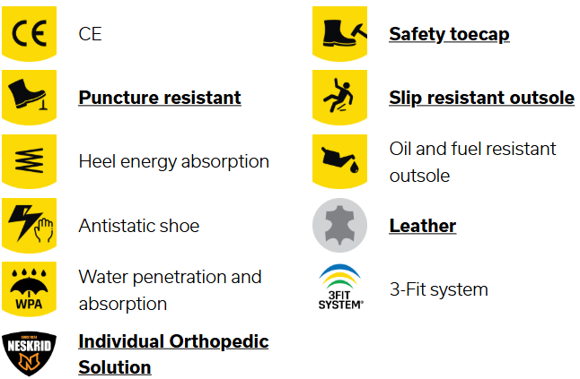 S3 safety shoes are suitable for work in an environment with high humidity and presence of oil or hydrocarbons. These shoes also protect against perforation risk of the sole, and foot crushing.