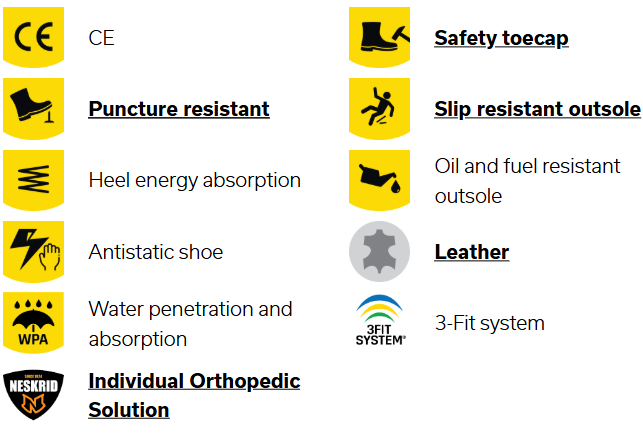 S3 safety shoes are suitable for work in an environment with high humidity and presence of oil or hydrocarbons. These shoes also protect against perforation risk of the sole, and foot crushing.