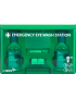 Wipeable, hard-wearing ABS plastic with illuminated printed instructions; useful if a power cut happens so the station can be located. Dust proof heavy duty cover keeps contents clean. Central Mirror for easy application. Contains easy-to-squeeze bottle with an eye cap, allowing the eye to be irrigated easily and efficiently.