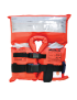 Designed for use on all commercial and ocean going vessels worldwide. These closed cell foam jackets have red nylon safety outer fabric, comfort fit neck, adjustable webbing belts and plastic buckles. Retro-reflective tape, whistle, lifting loop and orange nylon buddy line are standard on all jackets. These jackets are very economically priced and are NOT foldable.
