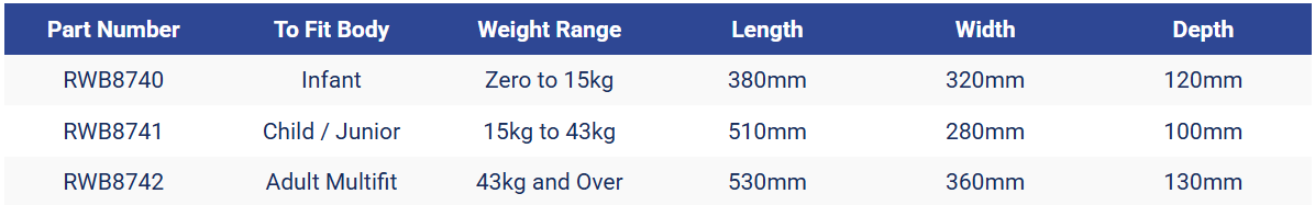 Available in 3 sizes - Infant, child and multifit adult. RWB8742 Adult Multifit jacket will fit chest size up to 175cm. It is recommended that a life jacket light is also used with these jackets - such as 'Lalizas Safelight 2'.