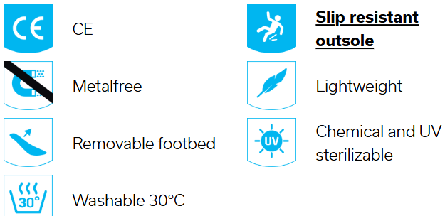 Step into the future of foot comfort with our BESTLIGHT1 medical shoes. These ultra-light, universal clogs are perfect for any environment, whether wet or dry, and on extremely slippery surfaces. Designed with lightweight materials, they enhance your comfort level while ensuring a tight grip. The BESTLIGHT1 is easy to clean and hygienically designed, supporting chemical and UV sterilization. It's even washable at 30°C, ensuring your shoes remain fresh and clean. Ideal for industries such as medical, chemical, cleaning, food & beverages, and catering, it's a metal-free, sterilizable solution that combats bacteria and other microorganisms.