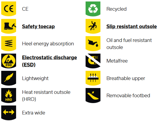 Category: EN ISO 20345:2022 - ASTM F2413:2018 S1 SR ESD FO HRO