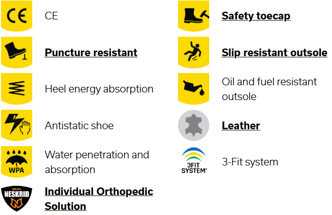 S3 safety shoes are suitable for work in an environment with high humidity and presence of oil or hydrocarbons. These shoes also protect against perforation risk of the sole, and foot crushing.