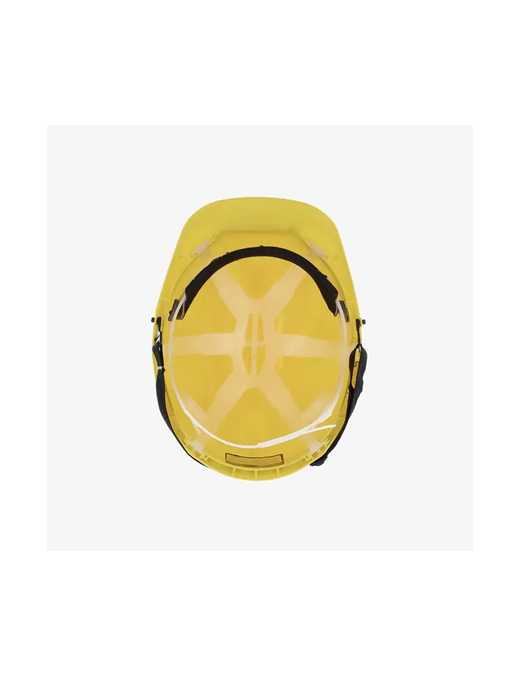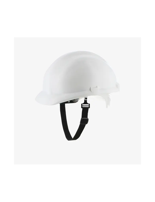 Lightweight safety helmet with a detachable 4-point chinstrap, 6-point textile harness, vented ABS shell and wheel ratchet